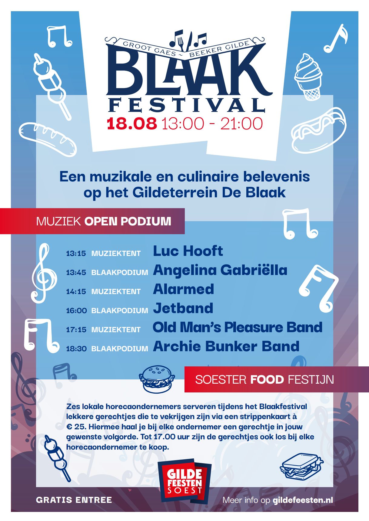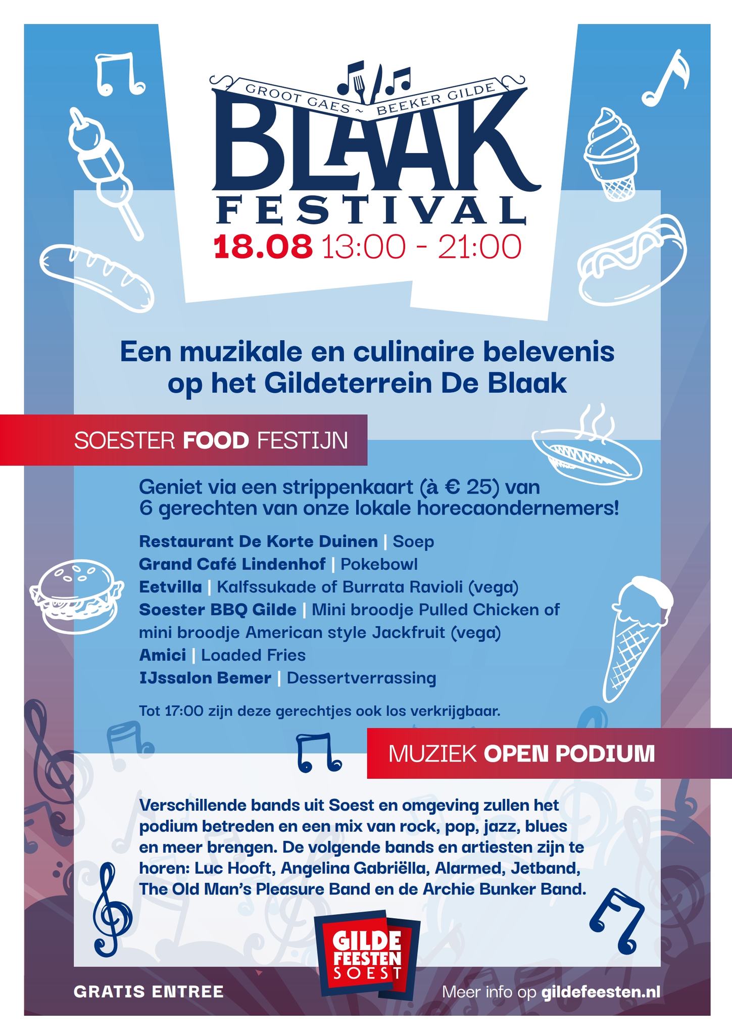 Op zondagmiddag 18 augustus organiseren we het eerste blaakfestival met een open podium met optredens van lokale artiesten en acts en een Soester foodfestijn gefaciliteerd door lokale horeca ondernemers